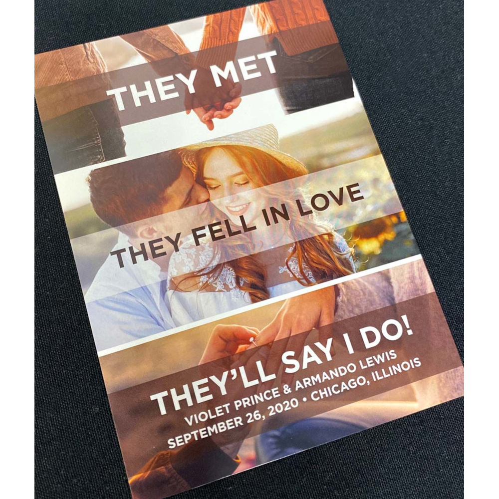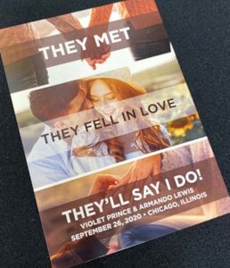 With all our printing orders, there is no minimum order quantity required - we print exactly what you need whether it's 36 or 176 and pricing gets adjusted accordingly! Browse popular quantity pricing below or call our wedding specialist in our Chicagoland showroom for a quote on your party size.