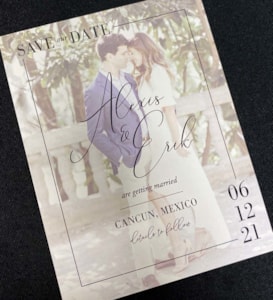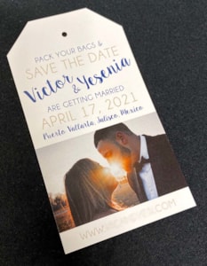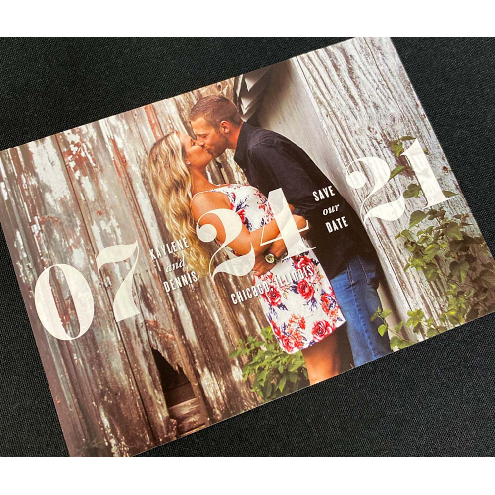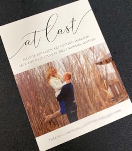 Congratulations on your engagement! Now it's time to share your news as well as your wedding date. We can customize a card, postcard or magnet with your photos, colors, fonts, embellishments, or any other details unique to you!