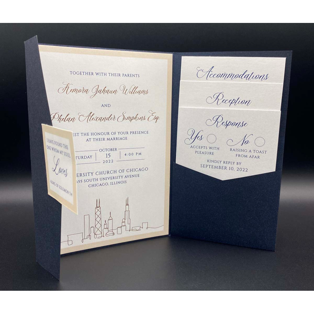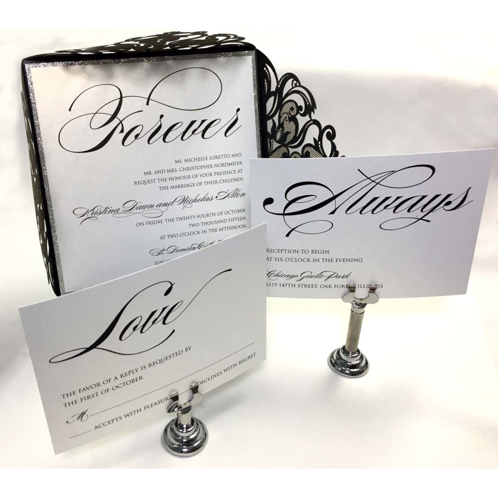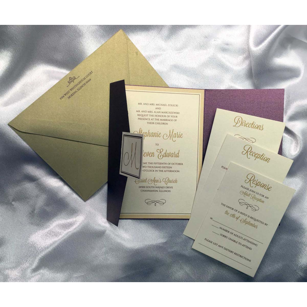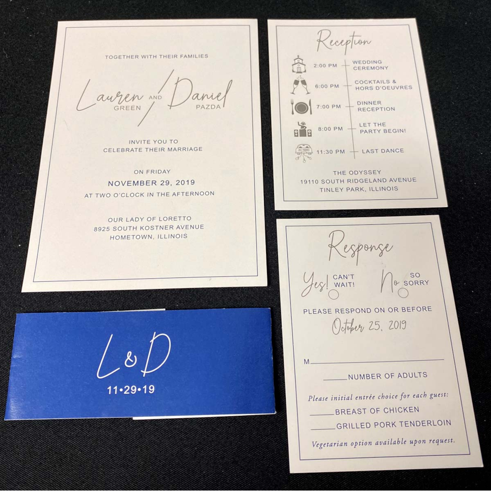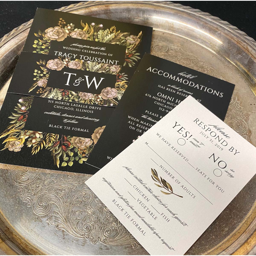 Bring your inspirations and ideas for us to create; or check out some of the custom invitations that we created for other happy couples. We have well over 900 samples in our Chicagoland showroom! You can choose from one of our many designs, change the colors, fonts or anything else to make it your very own. From there, our team of wedding experts will help you with the text and all the rest!