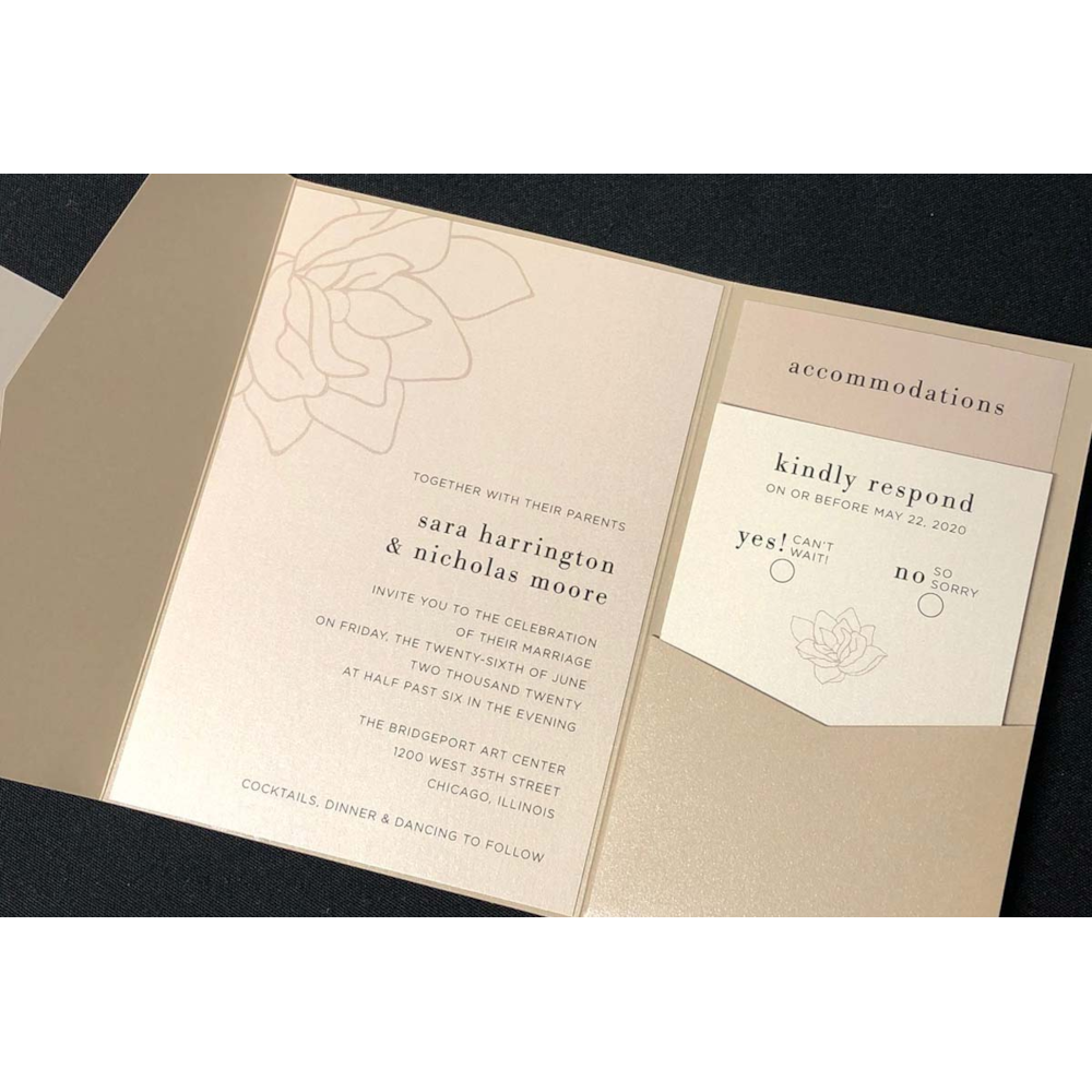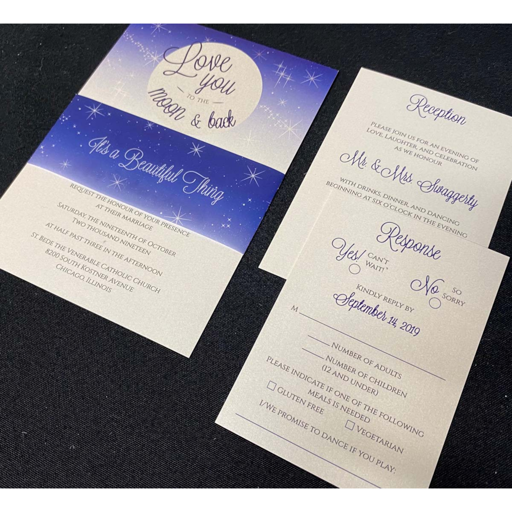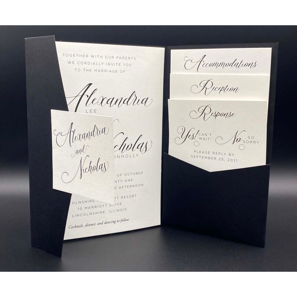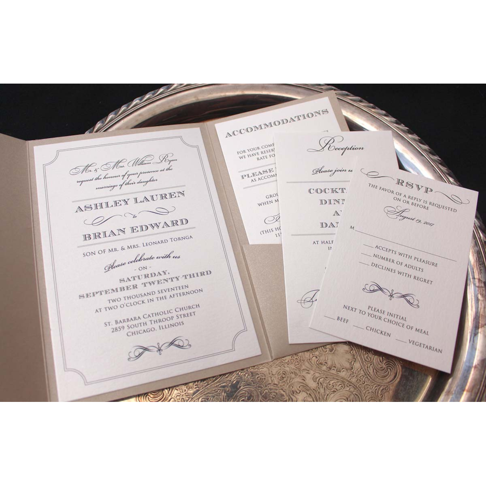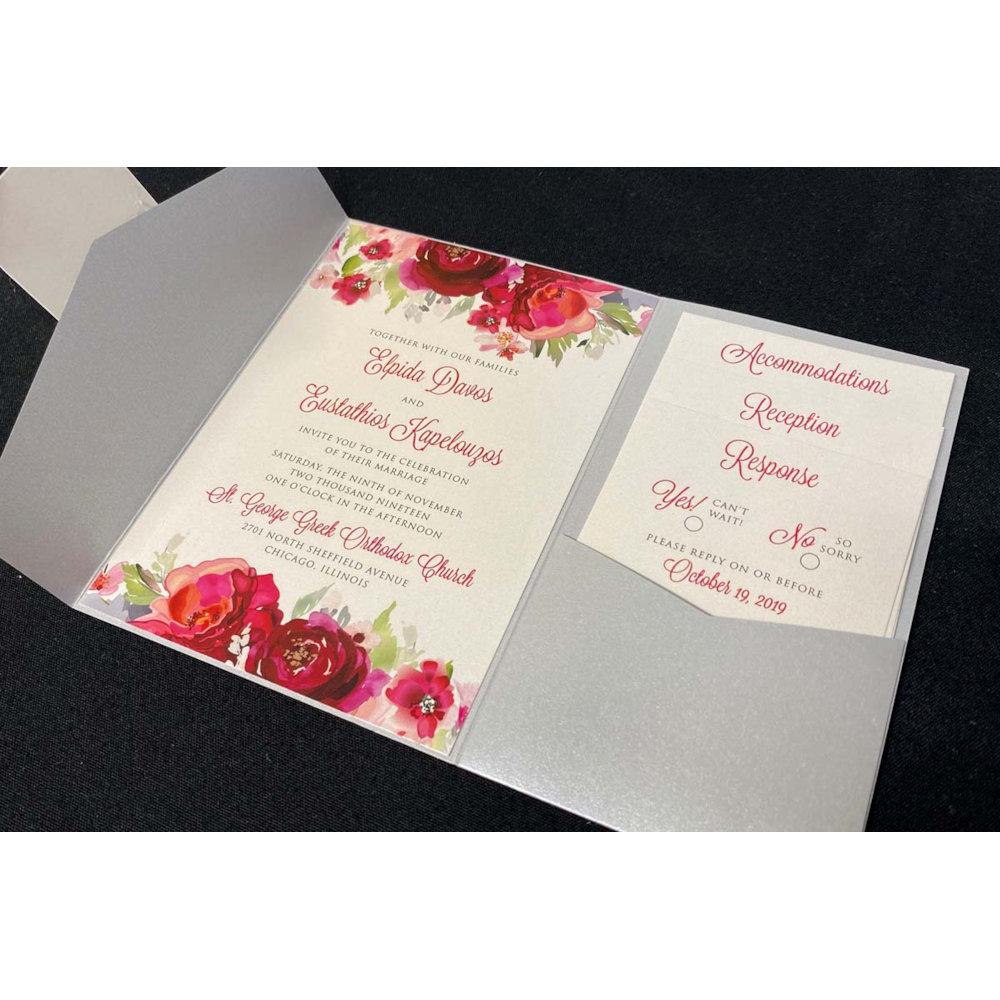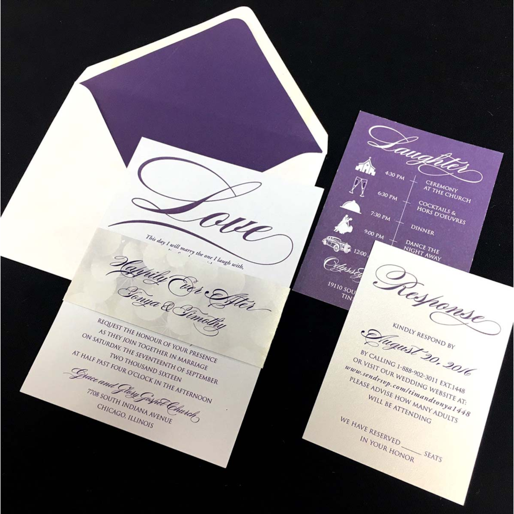 Bring your inspirations and ideas for us to create; or check out some of the custom invitations that we created for other happy couples. We have well over 900 samples in our Chicagoland showroom! You can choose from one of our many designs, change the colors, fonts or anything else to make it your very own. From there, our team of wedding experts will help you with the text and all the rest!