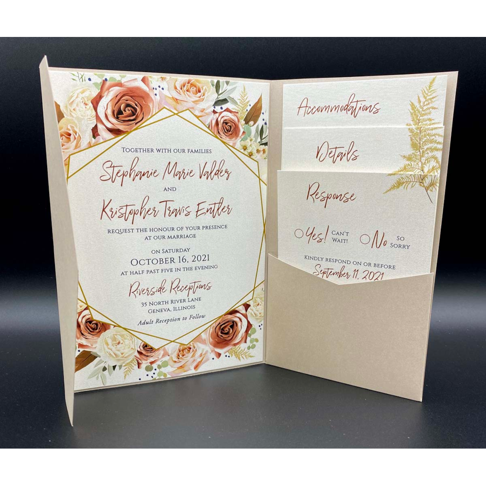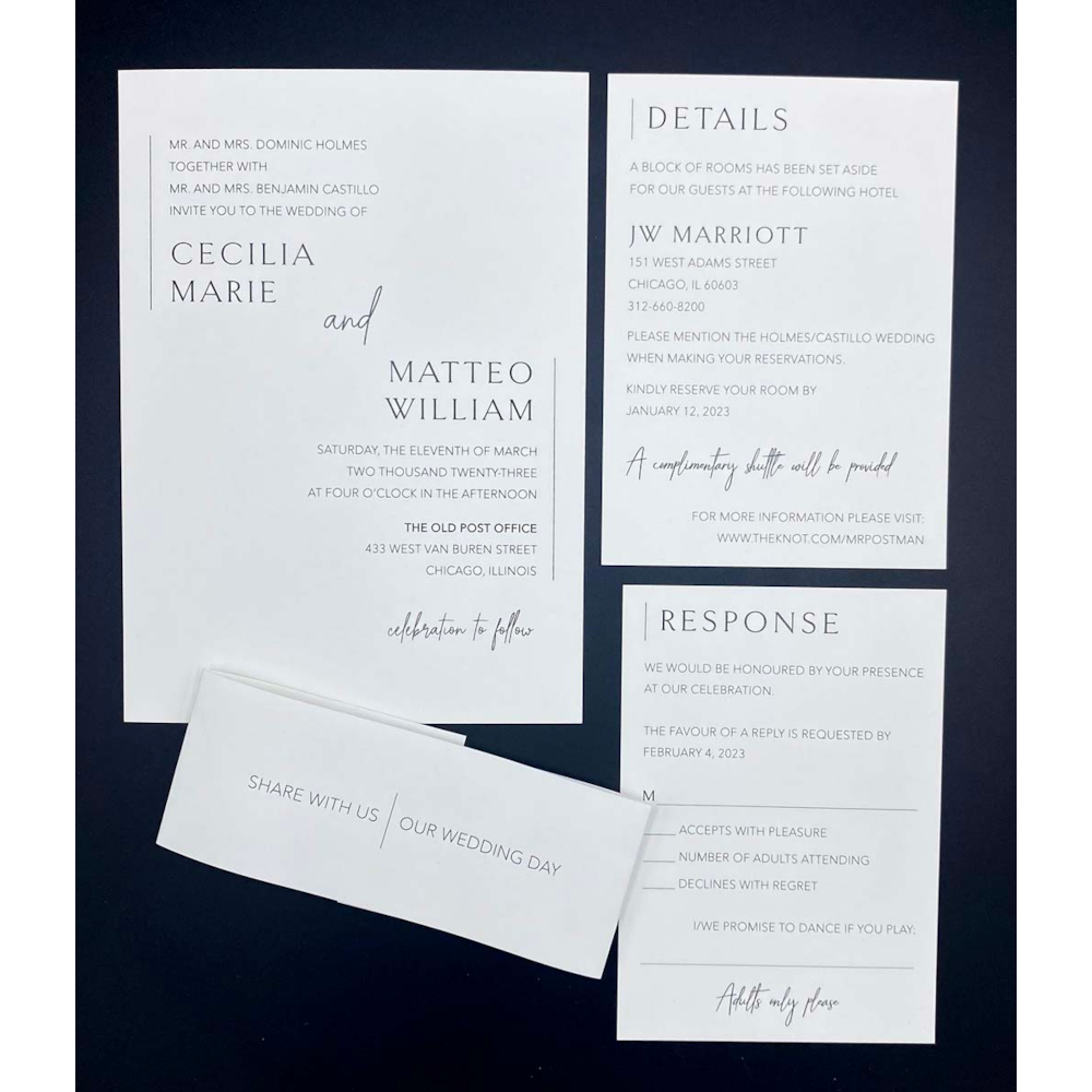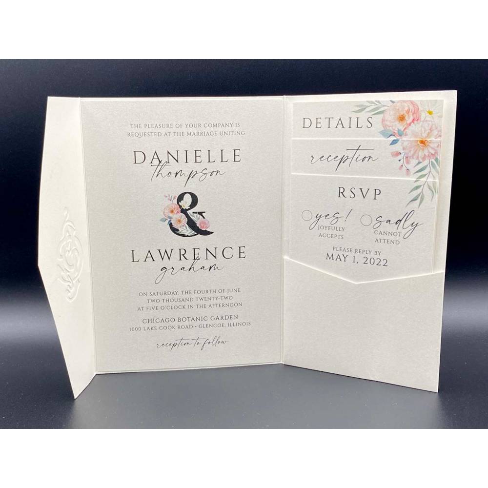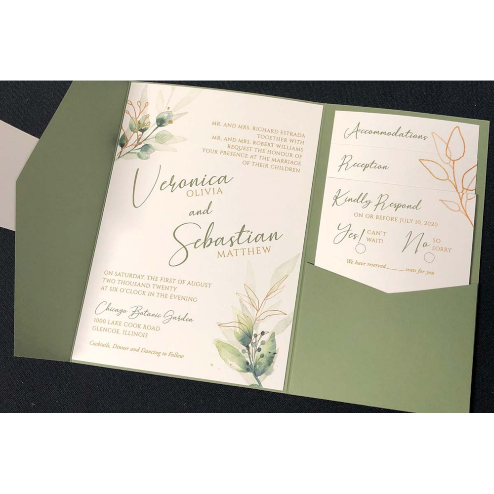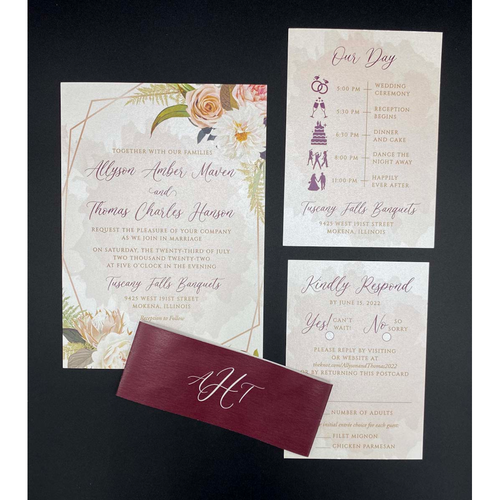 Bring your inspirations and ideas for us to create; or check out some of the custom invitations that we created for other happy couples. We have well over 900 samples in our Chicagoland showroom! You can choose from one of our many designs, change the colors, fonts or anything else to make it your very own. From there, our team of wedding experts will help you with the text and all the rest!