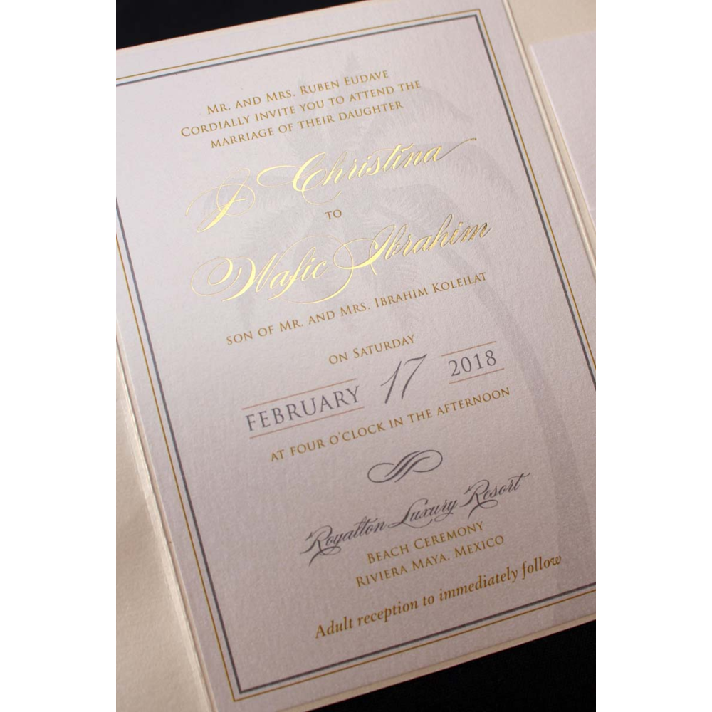 As a bride or groom-to-be, you have a vision for your wedding day. From the color palette and dress; to the venue and menu. Every detail ties into your theme. Whether you want to keep your wedding invitations simple or jazz them up, we can personalize anything and everything to bring your vision to life.