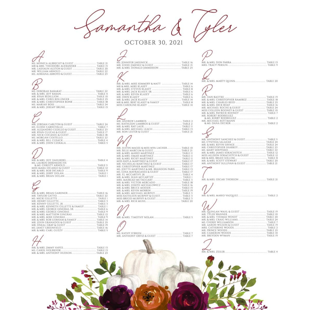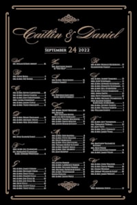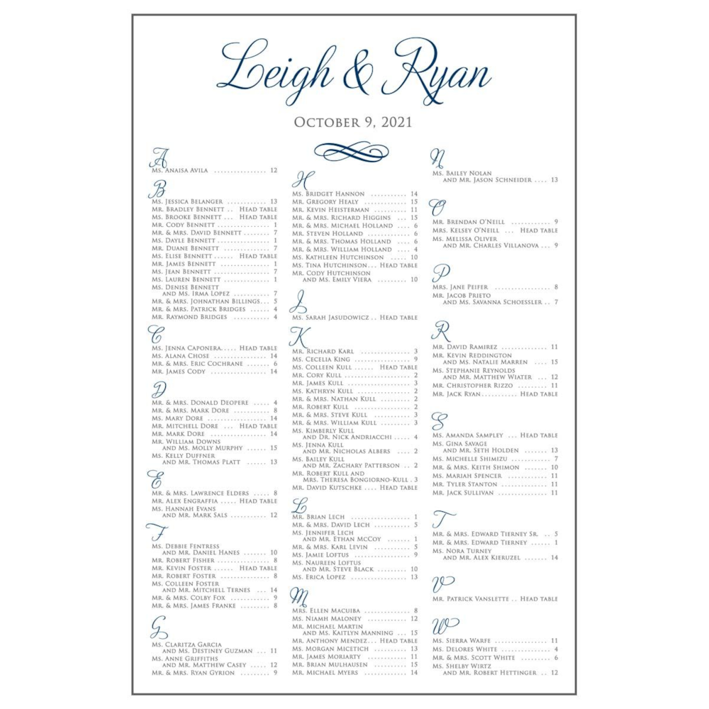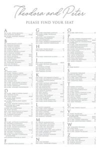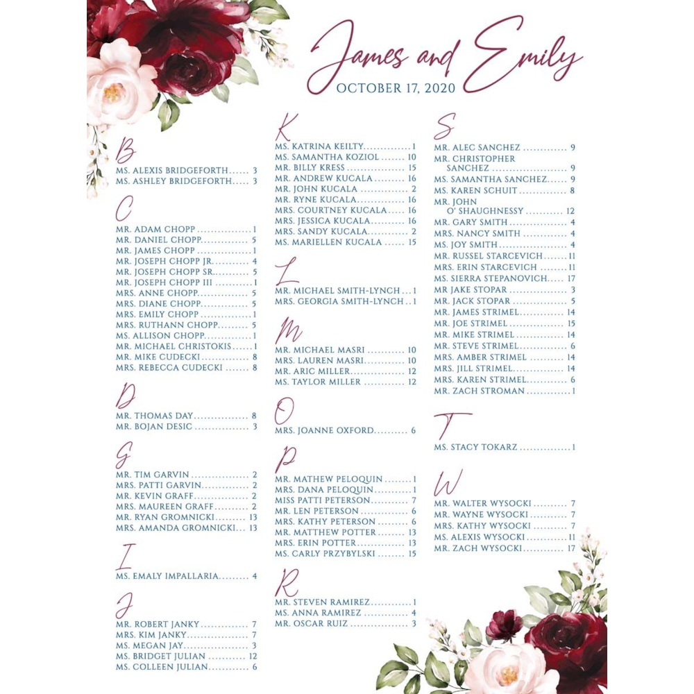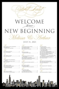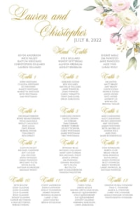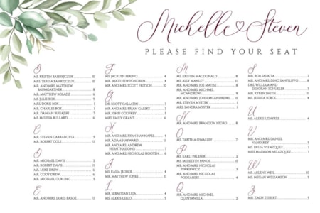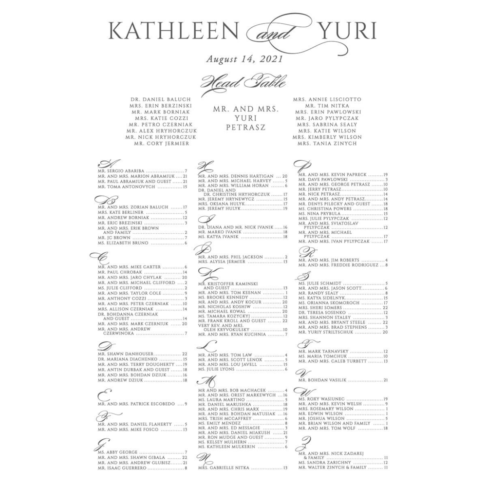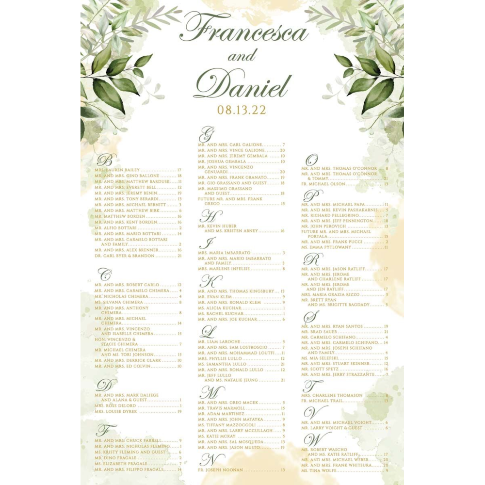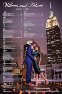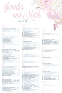 Our customizable seating charts allow you to incorporate your wedding theme, colors, and personal flair. Whether you prefer a traditional elegant design or a modern, minimalist approach, our design team can create a chart that complements your overall décor and enhances the visual appeal of your venue. We can print on foamcore, paper or acrylic depending on your overall design.
