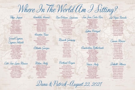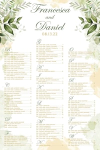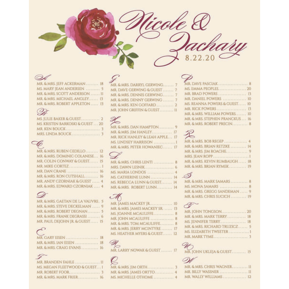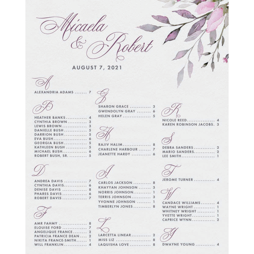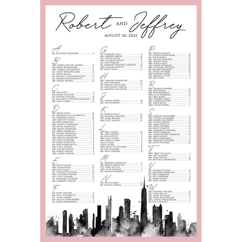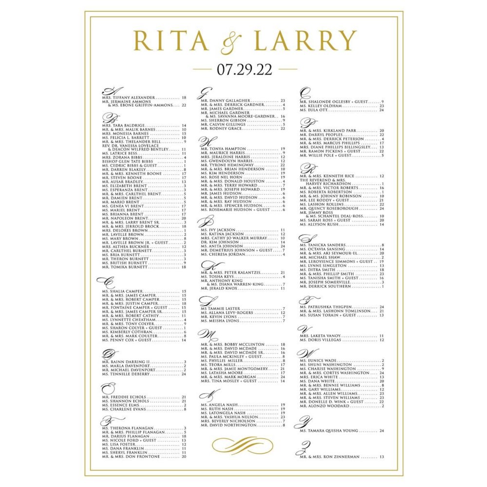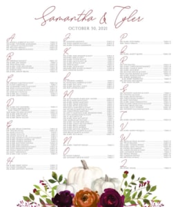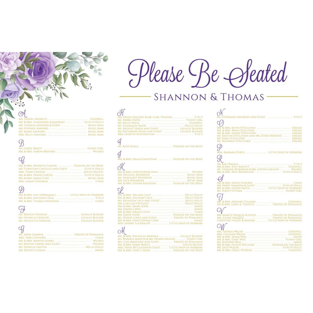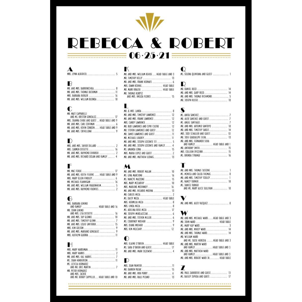 Our customizable seating charts allow you to incorporate your wedding theme, colors, and personal flair. Whether you prefer a traditional elegant design or a modern, minimalist approach, our design team can create a chart that complements your overall décor and enhances the visual appeal of your venue. We can print on foamcore, paper or acrylic depending on your overall design.